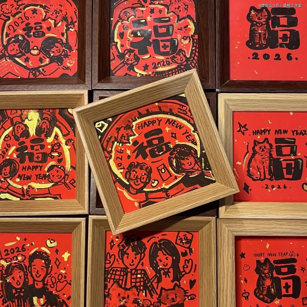 圈圈更新了更多的产品,包括具有特色的人生四格,还做了些小创新,在画像上加入录音配件,记录祝福语;配备了精美的复古风包装,每个包装都不一样。春节,她设计了全新的产品,“福气团团”——将人像或者宠物画像用象征团圆的圆包裹着,传递喜庆的氛围。