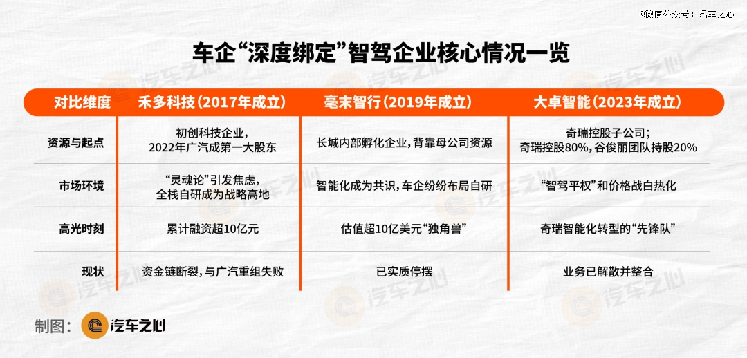 大卓靠奇瑞输血,禾多、毫末开启过市场外部融资,但本质上,三家都被车企「内部供应商」的身份给套牢了。