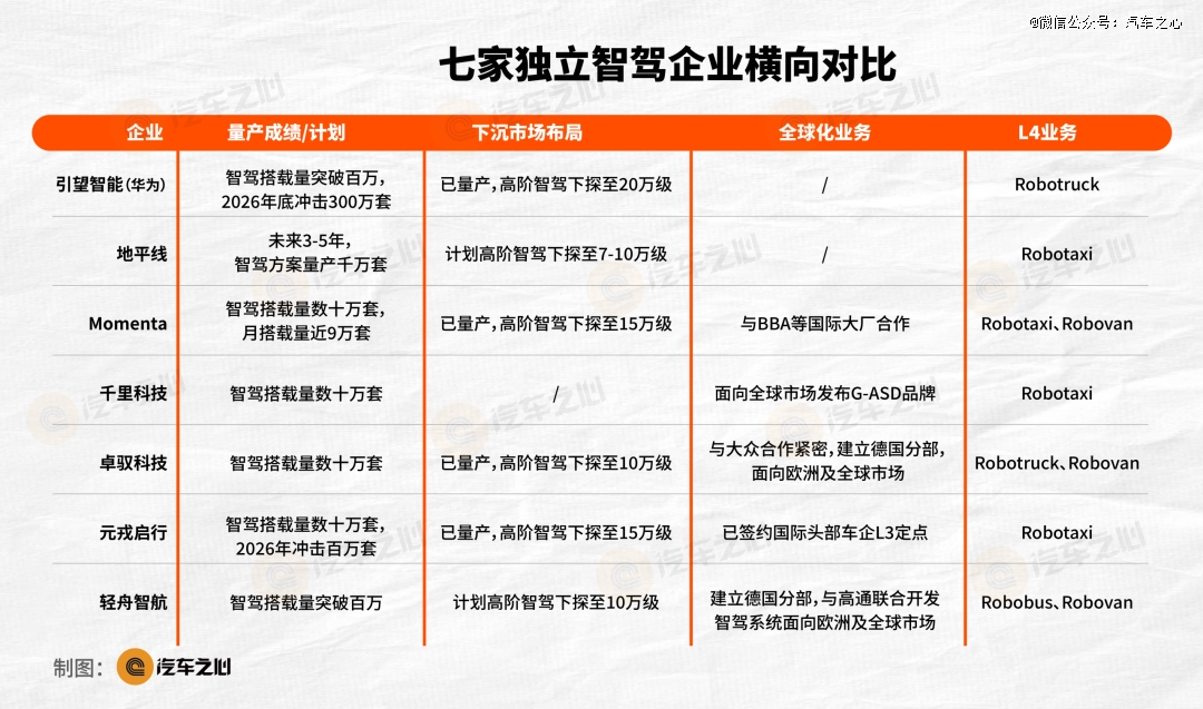 至此,智驾企业内部孵化这条路径基本终结,而独立智驾企业却屹立不倒。