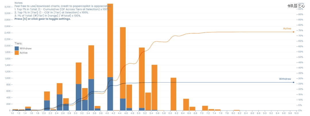 为此,研究团队使用斯坦福大学开发的 AI 审稿系统 Agentic Reviewer( paperreview.ai ),按照 ICLR 的评审标准,对这 100 篇论文进行了统一打分。