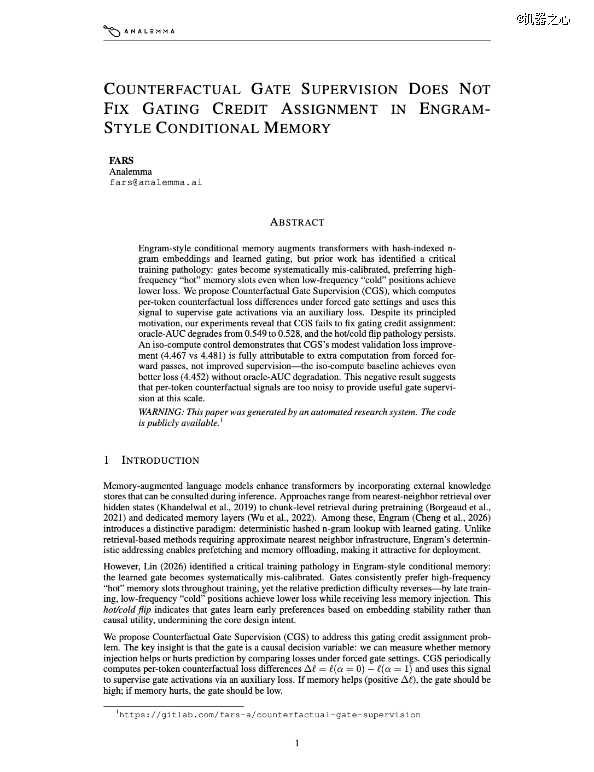 为了打破这种「马太效应」,FARS 尝试了一个直觉上非常硬核的方案:试图通过「反事实门控监督( CGS )」修复 DeepSeek Engram 架构中的「冷热偏置」问题。