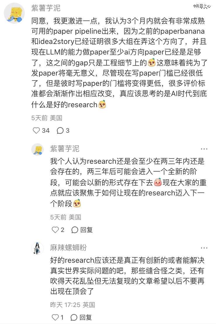有人认为,与其关注单纯 scale 出大量「普通 conference paper 」,不如将算力与模型能力投入到真正困难的开放问题上,这或许才是更具长期价值的方向。