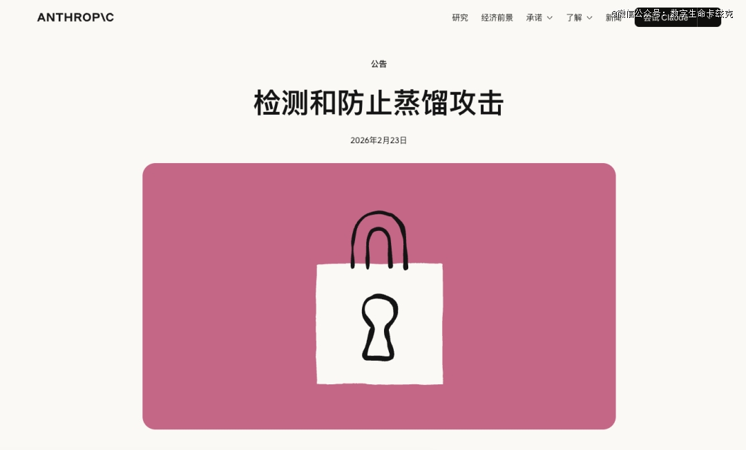 Anthropic(就是做Claude的那家公司)在官网发了一篇博客,标题起的特别正式,叫《检测和防止蒸馏攻击》。