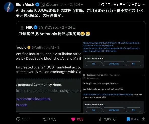 Anthropic一边在说中国公司偷它的模型输出,一边自己在用盗版书籍和歌曲训练模型。