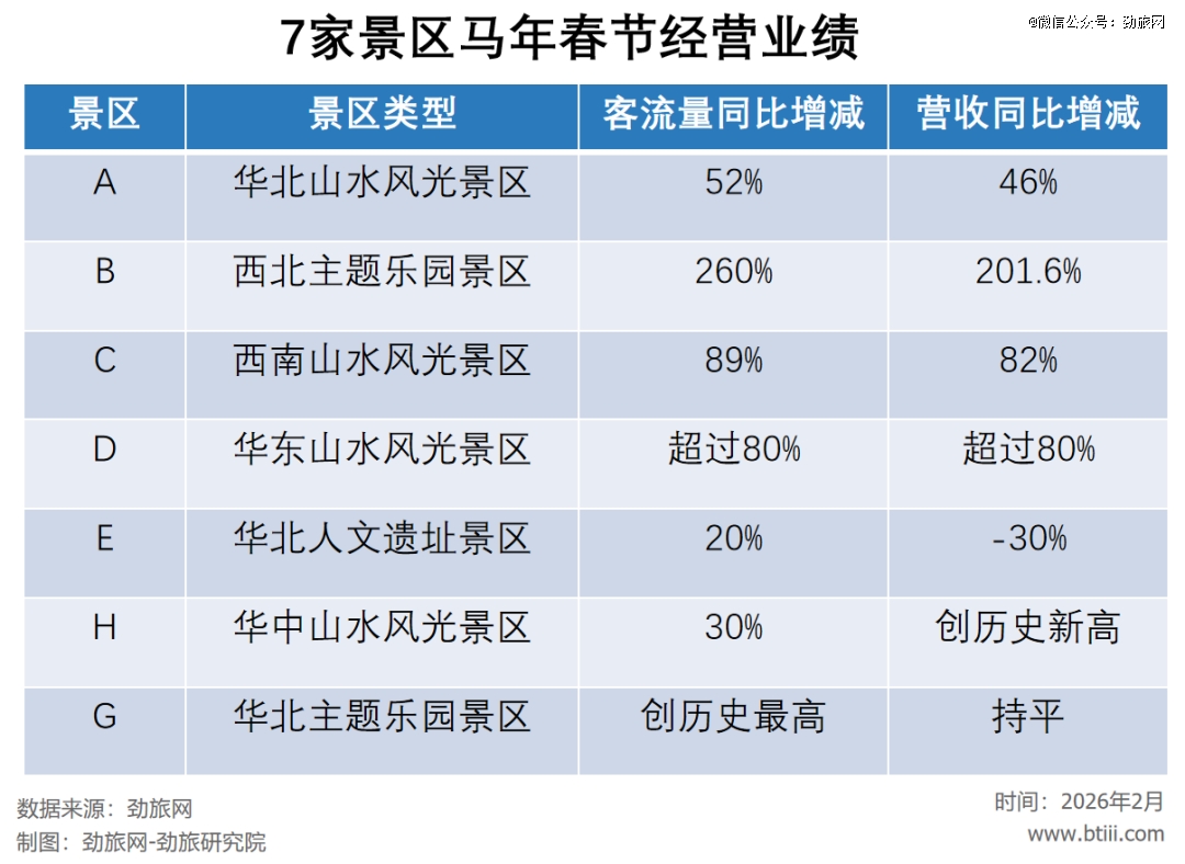 劲旅君随机调研的不同区域、不同类型的十多家景区中,7家景区明确披露马年春节经营业绩: