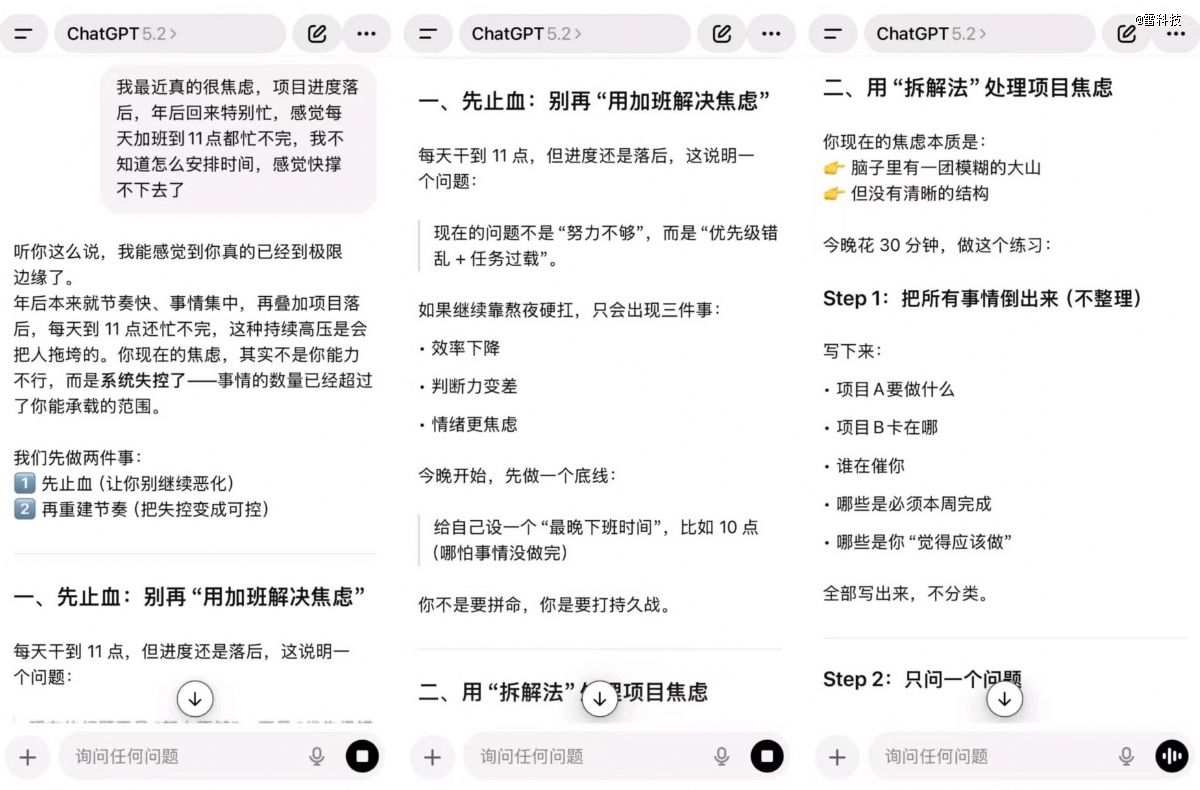 更让我没想到的是,小娴还把AI当成了倾诉对象。她经常会大段大段地和ChatGPT聊天,有时候会发检查单让它分析健康状况,有时候还会对它倾诉工作生活的不顺。