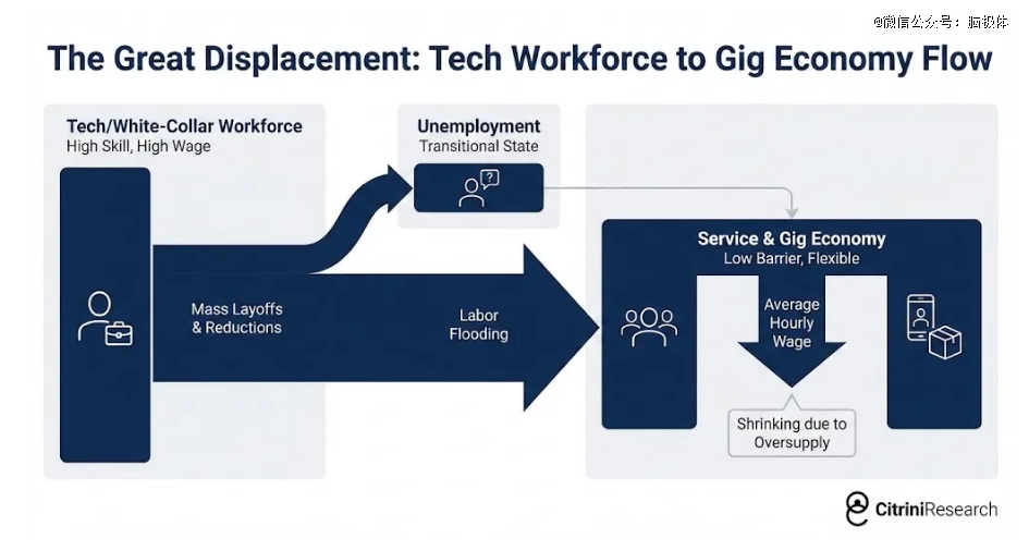 换句话说,“智能危机”想要发生,必须建立在被AI集体裁掉的全球白领,什么也不干,什么也不学,不寻求任何新工作机会的基础上。究竟是什么情况,会导致高学历、掌握丰富技能与资源、拥有可观财富积累的中产,就那么水灵灵地放任自己被社会放弃?真的会有这种事吗?