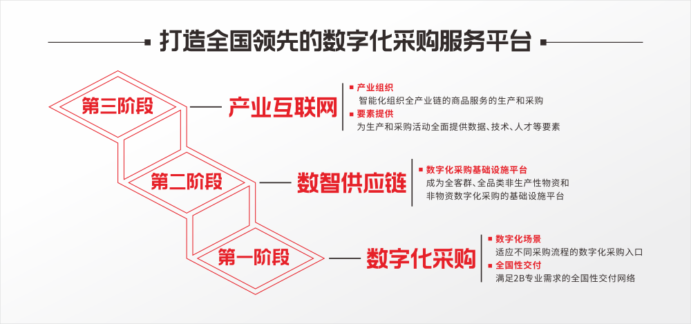 未来,欧菲斯将通过 “三步走”路径稳步实现从数字化采购平台到产业互联网的跨越式发展。第 一阶段,欧菲斯已顺利完成数字化采购阶段建设,通过API、SaaS等核心技术手段,广泛接入各类2B数字化采购场景,精准满足政企客户专业化采购需求。第二阶段,欧菲斯正全力推进数智供应链建设,致力于成为全客群、全品类非生产性物资及服务类数字化采购的基础设施平台,为客户提供全流程供应链管理服务,同时深度挖掘技术与数据要素的服务价值,筑牢数智化转型根基。第三阶段,欧菲斯将向产业互联网目标全面冲刺,为全产业链的生产与采购活动提供数据、技术、人才等全要素支持,通过智能化手段统筹产业链商品与服务的生产采购环节,实现全产业链协同效率、全要素生产率与全场景服务能力的三重提升,最终成长为具备核心生态竞争力的大型产业互联网平台。