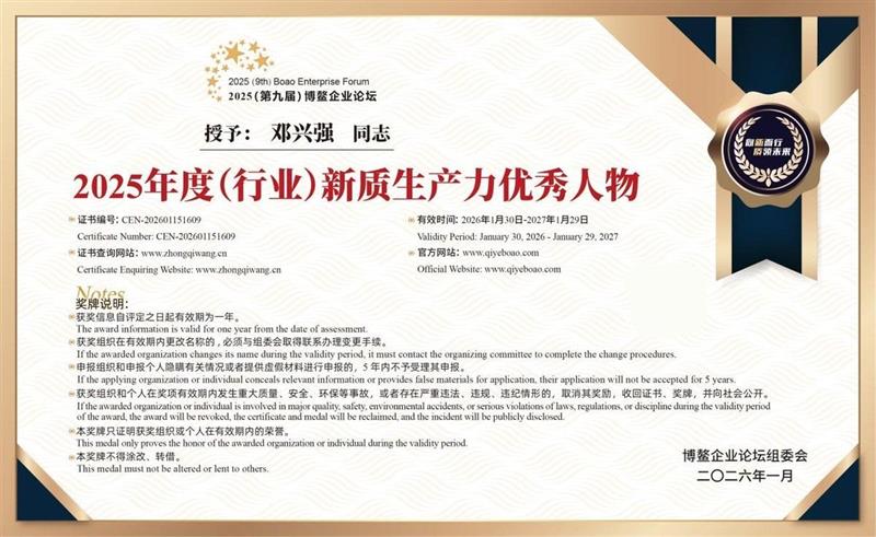 2026年1月31日,2025(第九届)博鳌企业论坛在海南隆重举行。本届论坛以“向新而行 质领未来”为主题,汇聚了部委领导、知名经济专家、500强企业*及各行业优秀企业家代表,旨在凝聚广泛社会共识与发展合力,激发企业内生动力与创新活力。与会嘉宾围绕新质生产力的培育路径进行了多维度、深层次交流,共同探讨高质量发展实践方案,为产业转型升级与可持续增长献计献策。