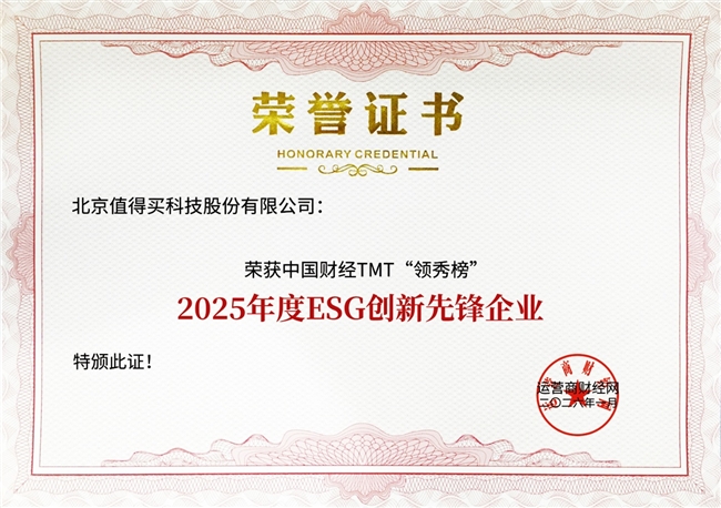 近日,由运营商财经网主办的2026中国财经TMT“领秀榜”盛典圆满落幕,盛典集中表彰了一批在过去一年内表现突出的优秀企业和产品。值得买科技凭借对ESG实践模式的不断创新,尤其是在公益领域的卓 越表现,荣膺“2025年度ESG创新先锋企业”。