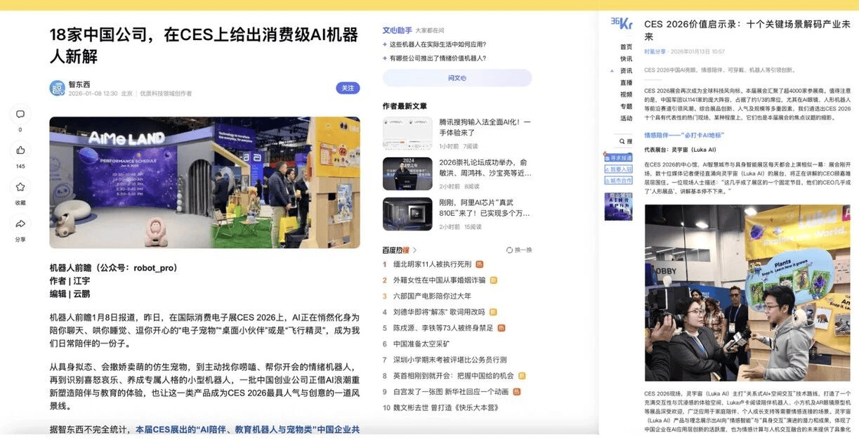 硅谷101在 YouTube 的长视频报道《CES 2026:探展50个AI项目背后的泡沫、野心与非共识》中,探究了 AI 项目背后的行业逻辑,给予灵宇宙高度关注。智东西、知乎 RTE 开发者社区等硬核科技媒体,则从“AI机器人新解”、“具身智能技术底座”等维度,肯定了 LingOS 操作系统的行业价值。