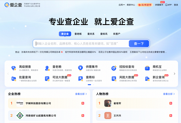 作为备受公众信赖的企业信息查询平台,爱企查一直致力于为大众提供全面、精准的企业信息查询服务,目前累计服务超5亿用户,成为连接消费者、企业与市场的核心信息桥梁。节后开工之际,爱企查将持续陪伴广大用户,唤醒开工元气,一键重启高效办公模式,以硬核数据能力与专业服务支撑,为职场决策保驾护航,助力大家乘风而上,开启马年全新征程。
