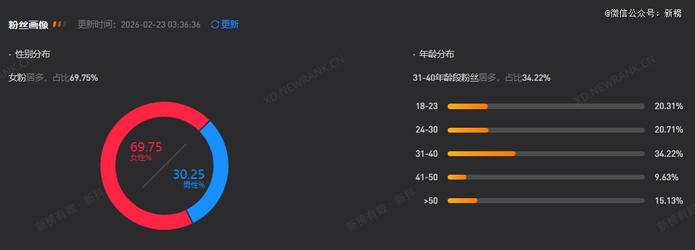 “周小闹”抖音粉丝年龄集中在31-40岁,具有一定的消费能力
