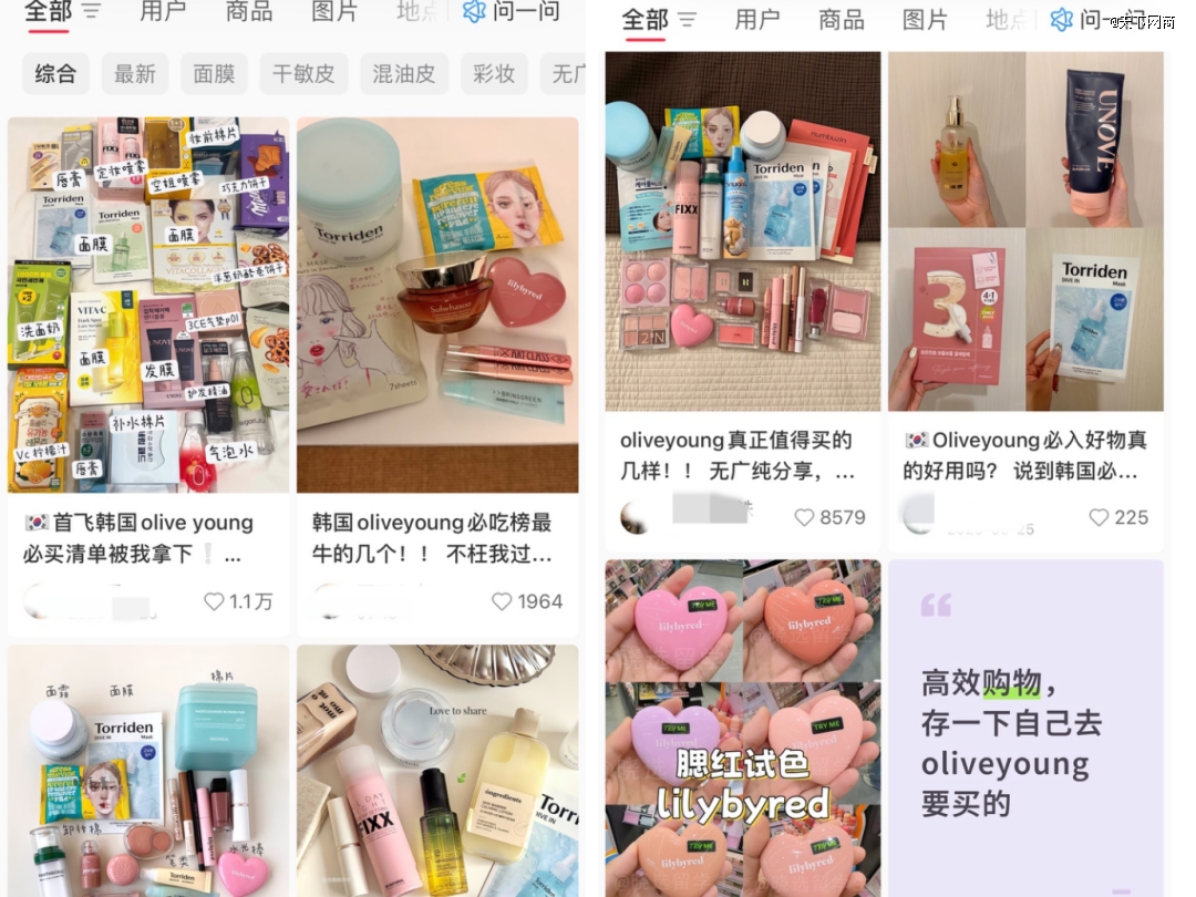 在韩国首尔、釜山、济州岛等热门旅游地,Olive Young的门店分布极密,每隔几条街区便能找到大大小小的门店。在社交媒体上,“Olive Young必买清单”“韩女氛围感神器”等内容铺天盖地,几乎每个赴韩旅游的年轻女孩,都会在这样的氛围里,主动或被动地被种草、买单。