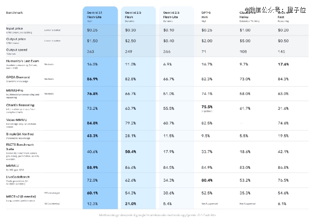 不过值得注意的是,谷歌官方并没有将其与Gemini 3 Flash对比,而且讨巧地选择了更旧版本的Gemini 2.5 Flash。
