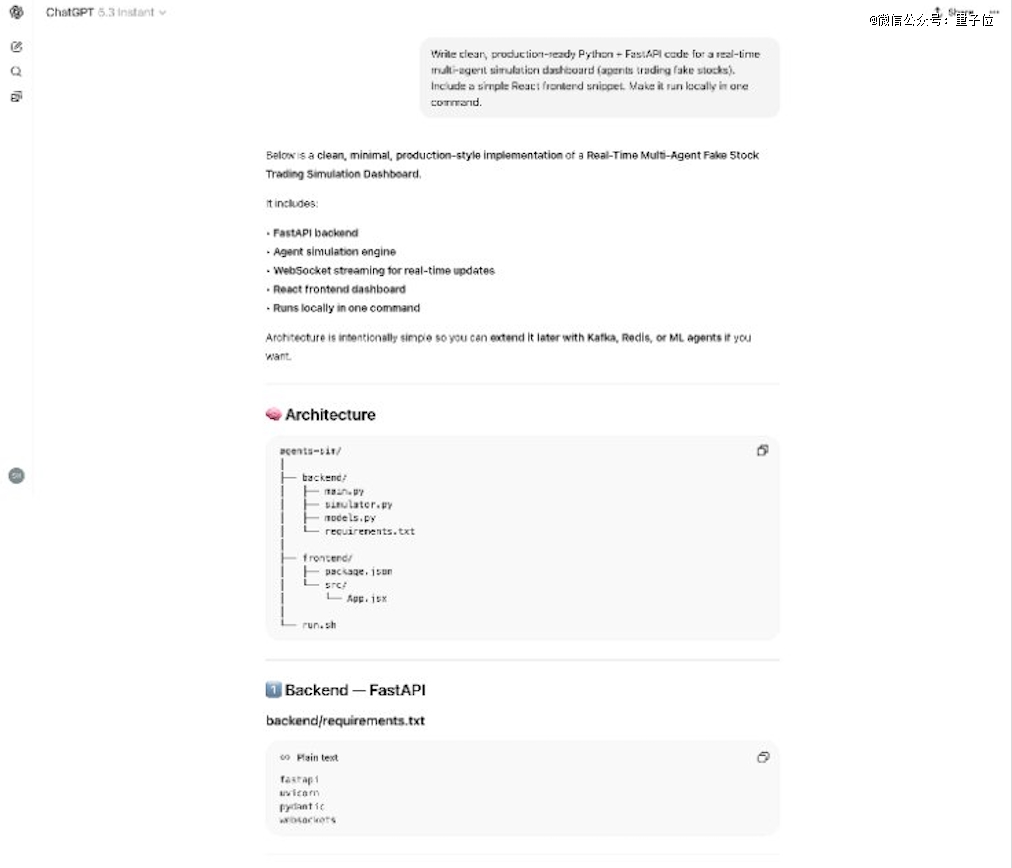 而GPT-5.3 Instant给出的代码方案更完整和工程化,更接近真实上线情况,仪表盘数据也会实时自动刷新,而非静态页面。
