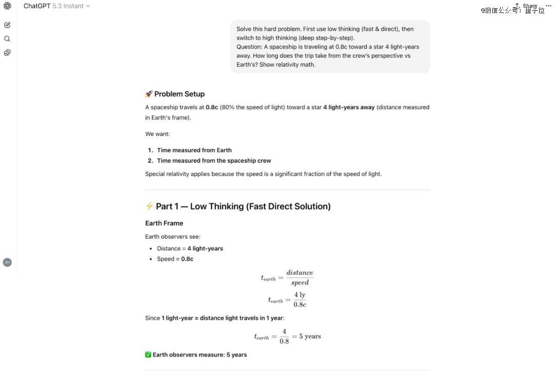 GPT-5.3 Instant也成功完成了思考,并额外做了表格和通俗解释,让结果更易懂更完整。