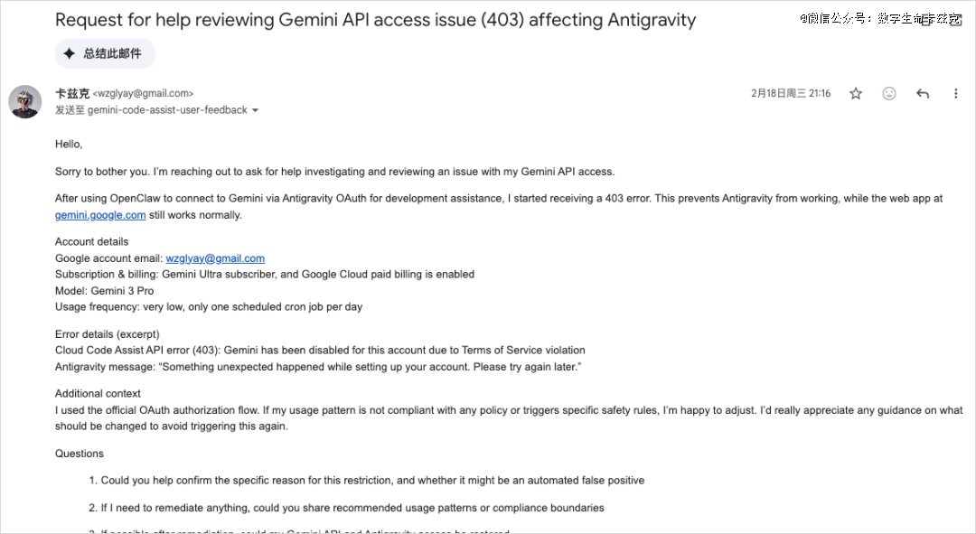 我过年的时候Google账号还被封了,被迫用AI去给Google写了一份声泪俱下的邮件。