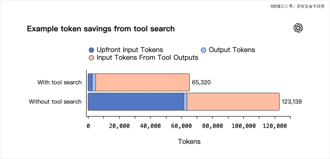 OpenAI在自己测试完以后,发现工具搜索配置在保持相同准确率的同时将总体token使用量减少47%,这个就非常牛逼了。