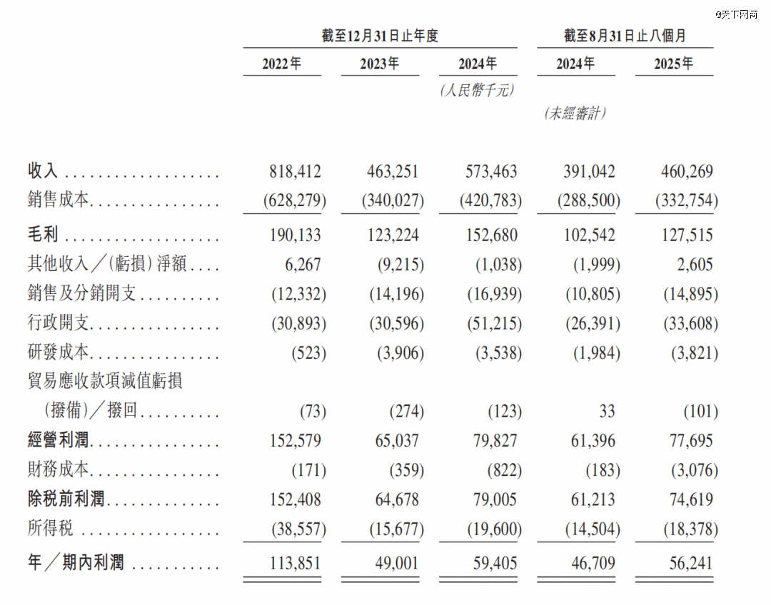 招股书显示,2025年前8个月,乐欣户外收入4.60亿元,同比增长17.7%;利润5624.1万元,同比增长20.4%。