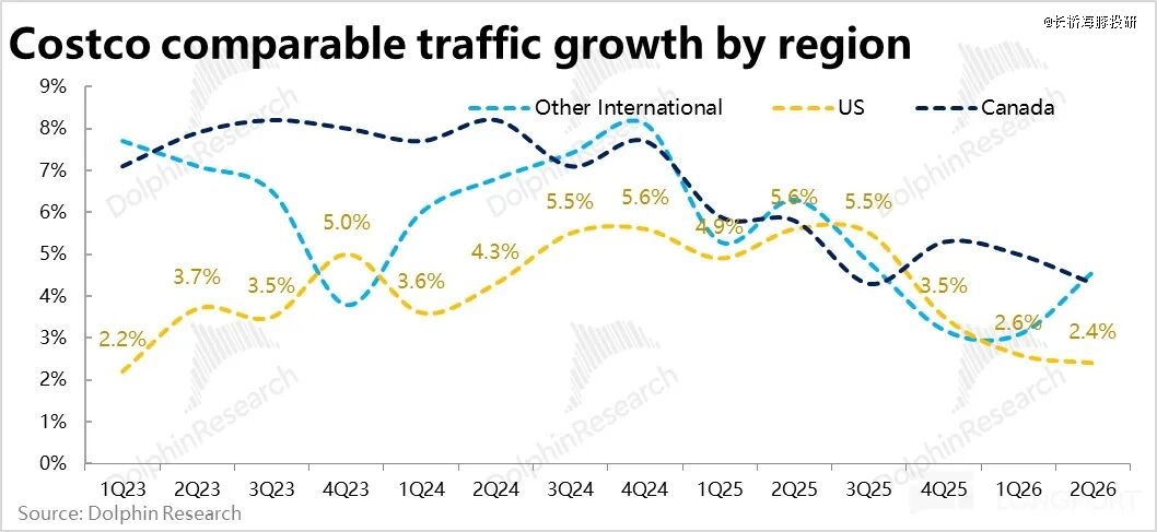 一些缺陷仍是,从北美地区的同店客流量增长依然再进一步放缓,销售额增长更多靠价格通胀(也有商品结构变化的影响)来驱动。