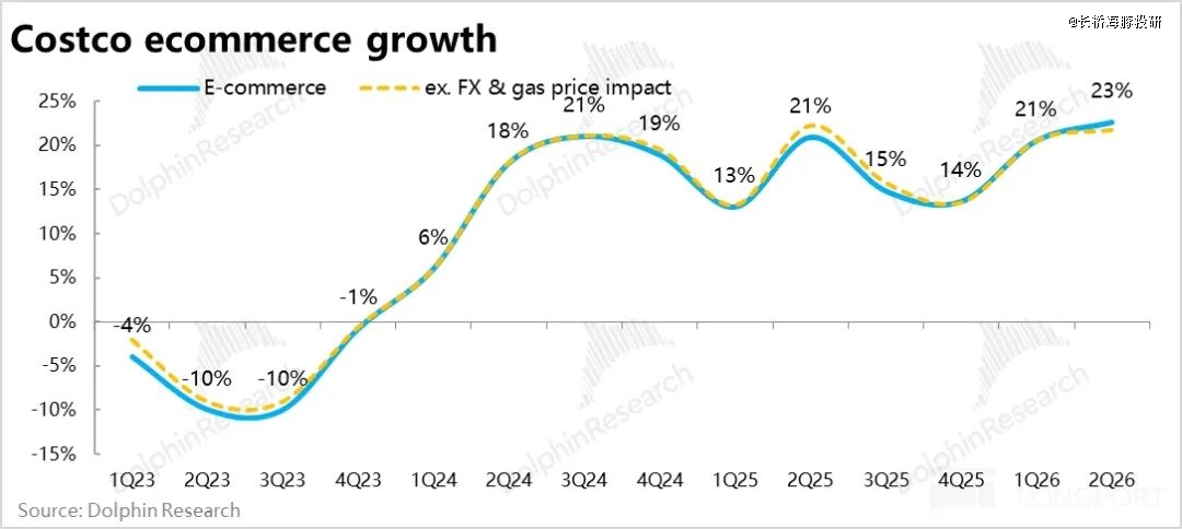作为后疫情时代的增长新动力,Costco 本季电商销售额同比增长近 23%,较上季继续提速,且明显好于预期。