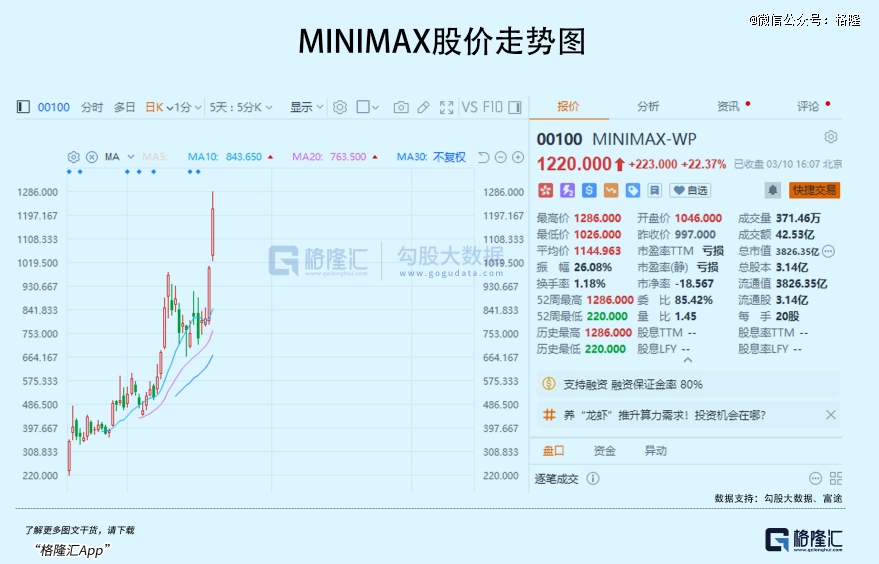 港股新上市才2月的MINIMAX更是两天飙涨51%,上市来累计飙升了6.4倍!市值高达3826.35亿港元。