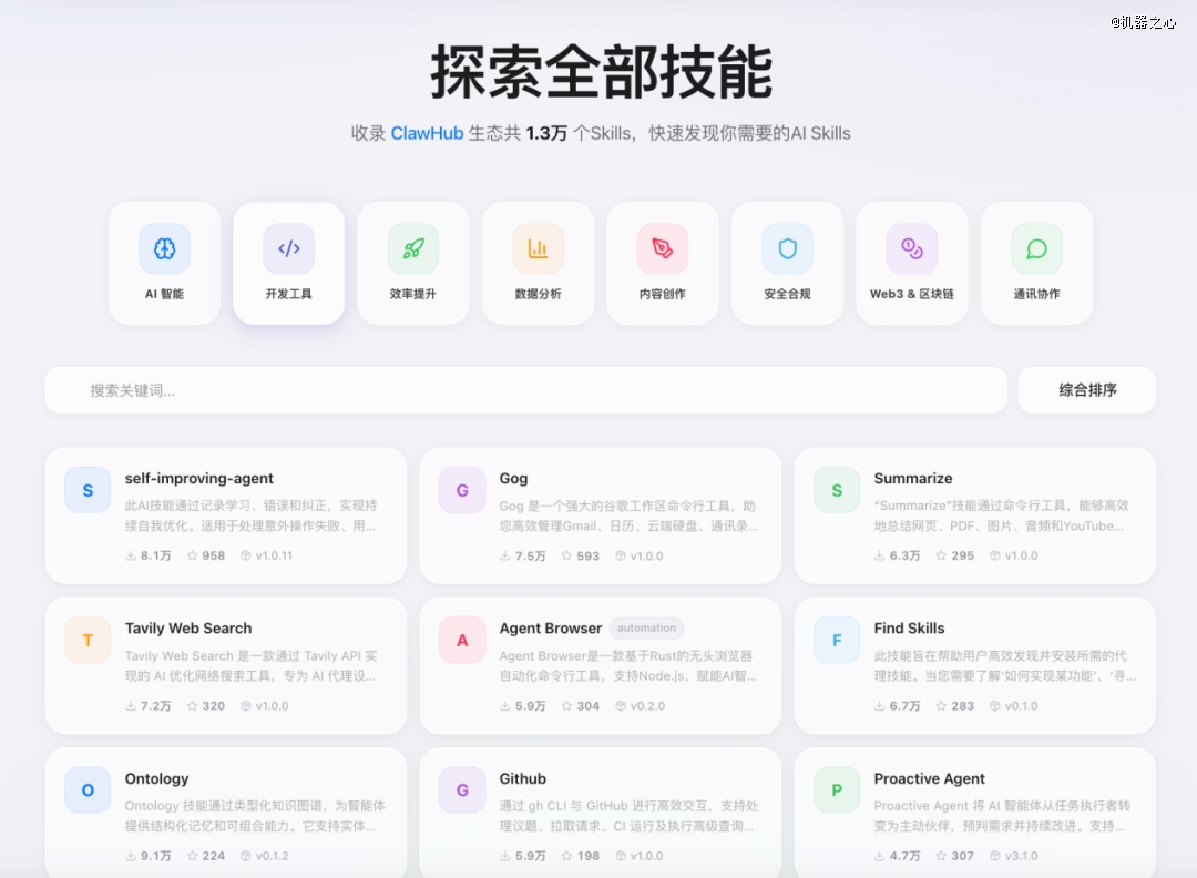 针对这种乱象,腾讯今天推出了一个面向国内用户的 SkillHub 技能社区。它是基于 OpenClaw 官方开源生态打造的本土化配套服务平台,相当于一个专门的 Skills 集散地,目前已经聚合了来自官方生态的 1.3 万多个 Skills,并持续增长。