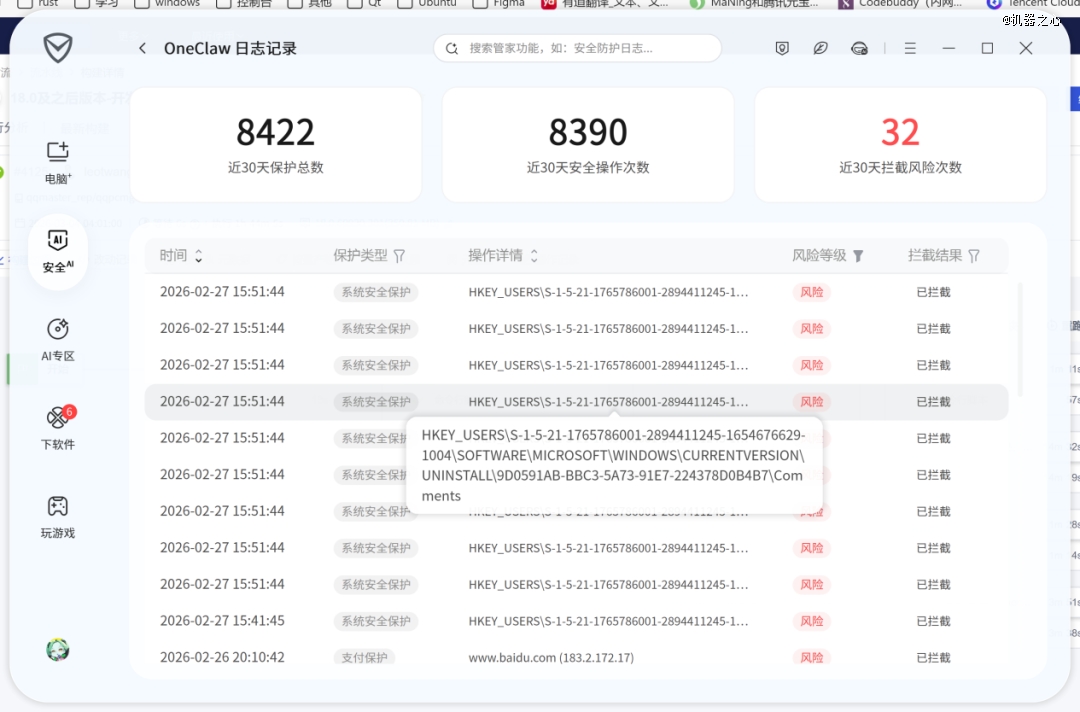 对此,腾讯电脑管家 18.0 版本推出「AI 安全沙箱」功能,以「隔离运行、全程防护、行为可溯」三位一体机制,将 AI Agent 的高权限操作纳入安全可控的隔离边界。