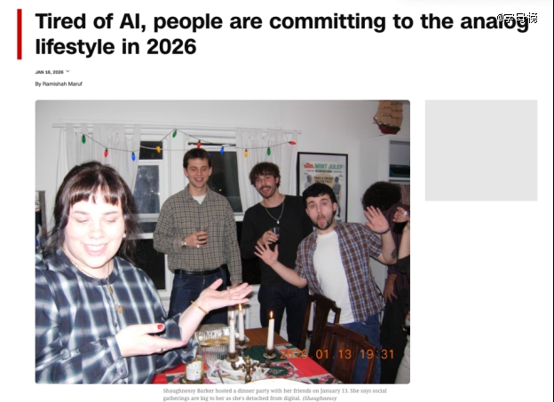 CNN在报道中指出,随着AI设备、助手和聊天机器人充斥我们的家庭和生活,一场反弹正在酝酿之中。不少年轻人越来越想要回归到更远离线上的生活,也许不能全然戒网,但也总算是后退一步。