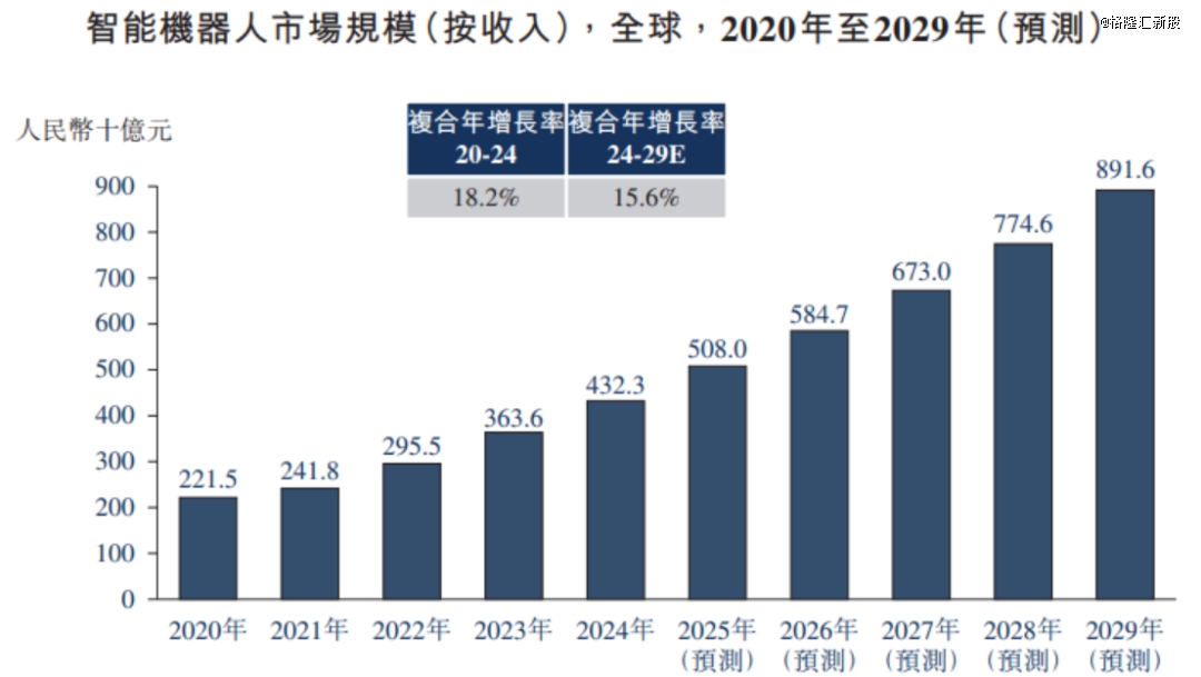2024年全球智能机器人市场规模达到4323亿元,预计到2029年将增长至8916亿元,2024年至2029年的复合年增长率为15.6%,略低于2020年至2024年18.2%的增速。