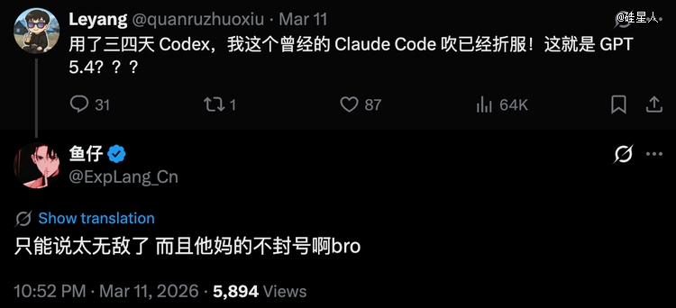 与此同时,Codex在程序员群体中的热度和口碑也在肉眼可见地上升。