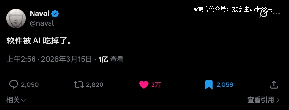 而AI开始吞噬软件,也就是软件这个中间层,本身正在被消灭。