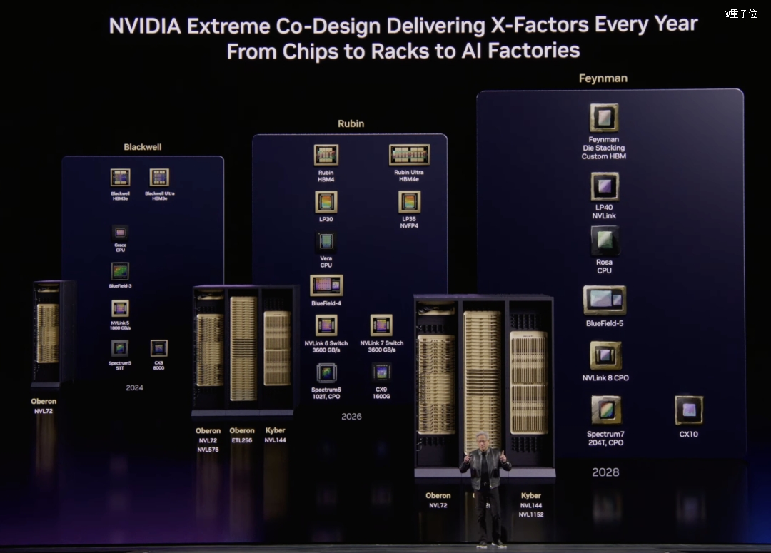 在发布会上,对于外界备受关注的下一代计算架构Feynman(费曼),老黄也做了预告,并表示计算架构,每年都会有新东西。