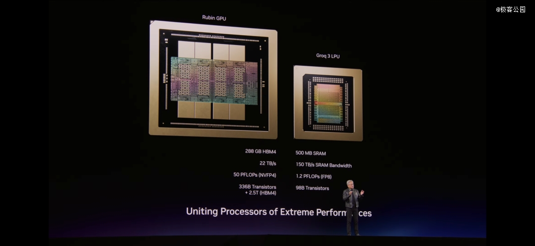 Groq 一颗芯片仅 500MB 存储;而 Rubin GPU 一颗芯片的显存将会达到 288GB HBM4。