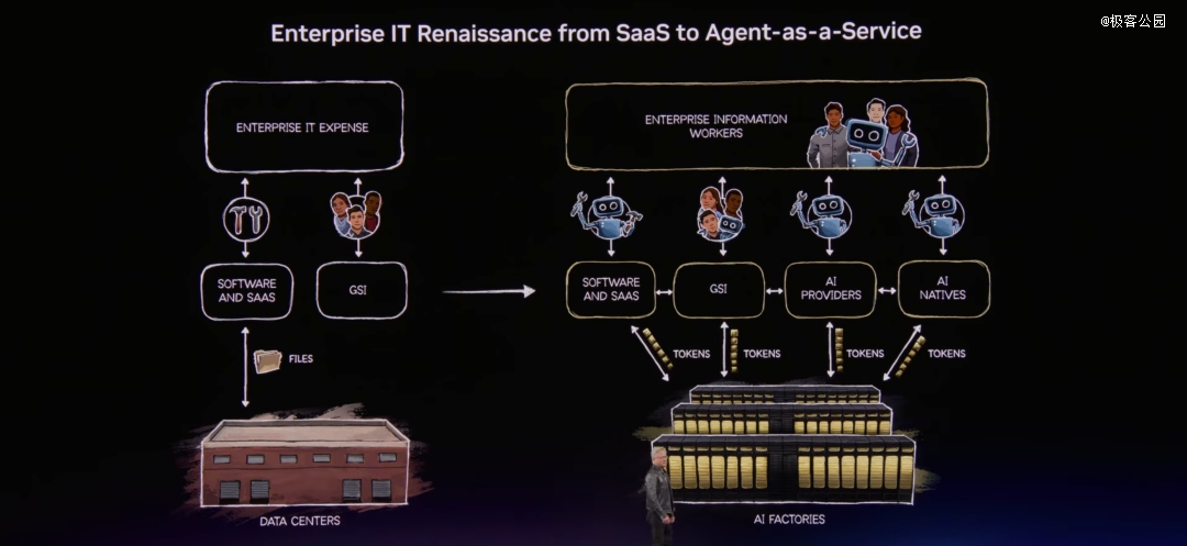 未来的每一家软件公司,都会是智能体驱动的。它们会成为 tokens 牌生产者、tokens 的使用者。同时也是面向所有客户的 tokens 提供商。