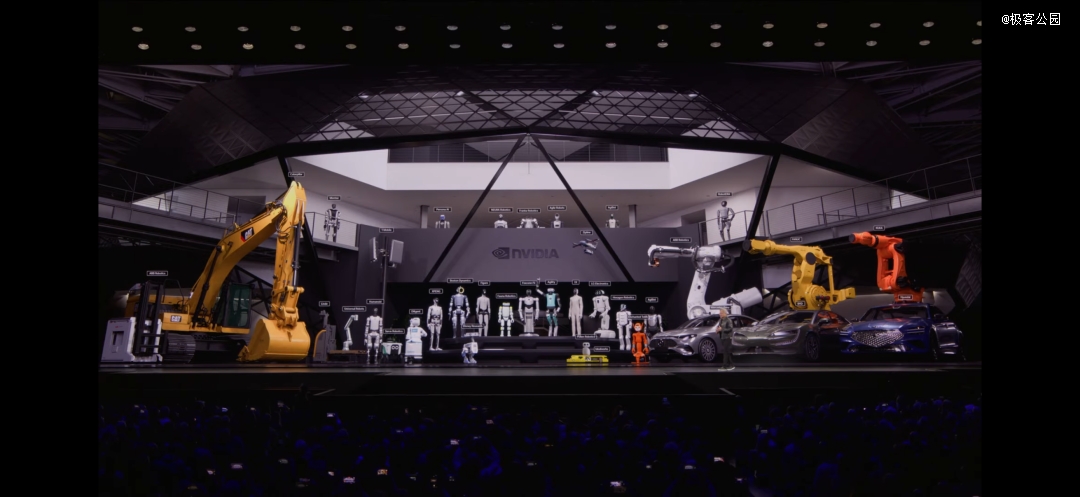 谈完了应用层的变化,黄仁勋将话题转到物理 AI 方向,并携手其物理 AI 家族亮相。