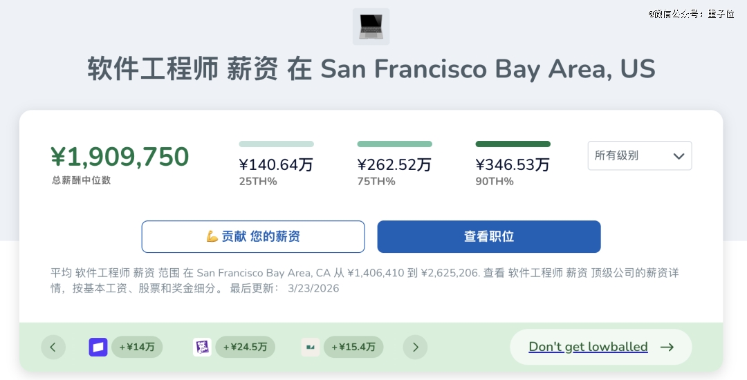 根据薪酬追踪网站Levels.fyi的数据,硅谷75分位软件工程师的年薪是37.5万美元(约262万人民币)。如果再加10万美元的token预算,总包就是47.5万美元,其中21%是token。