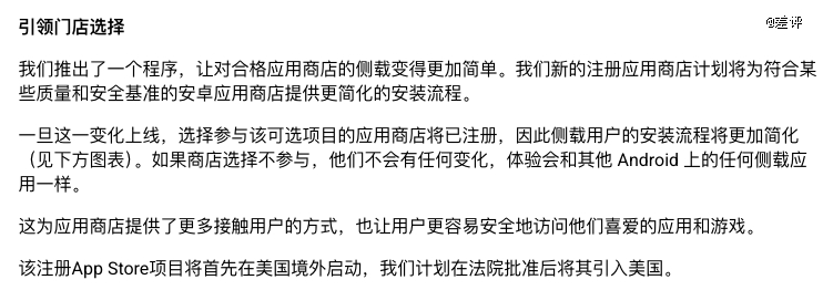 除此之外,Google 也给符合条件的第三方应用商店,保留了更顺畅的安装通道。