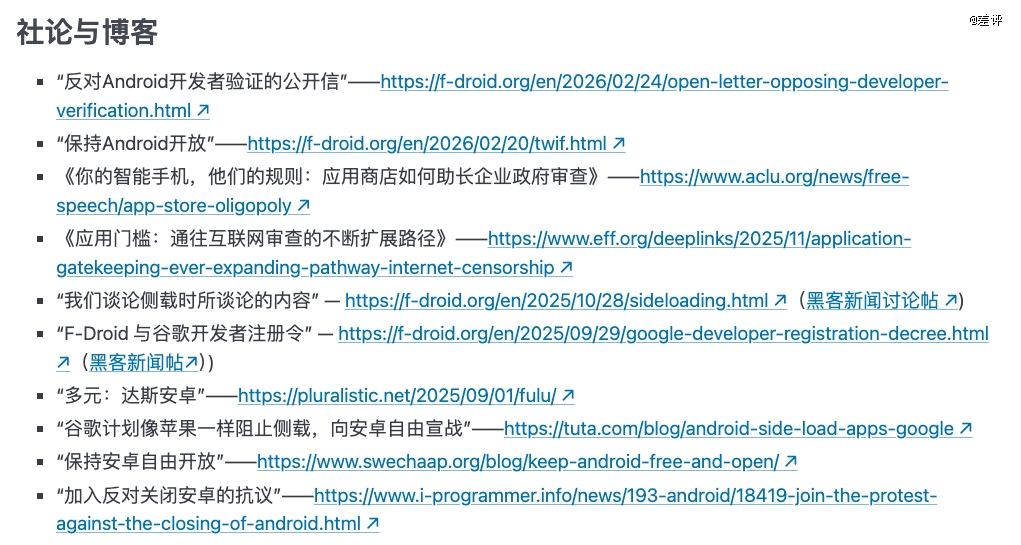 因为一旦这套东西被硬塞进 AOSP,事情的性质就彻底变了。那就不只是 “加强安全、防电诈”,而是直接去碰 Android *层那套 “谁都能用、谁都能改” 的开放逻辑。真走到那一步,谷歌面对的就不只是用户吐槽了,开发者圈子能把它喷死。