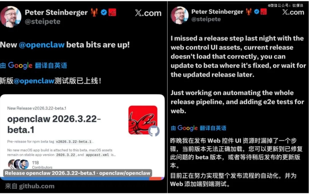 当地时间3月22日,OpenClaw开发者彼得·斯坦伯格(Peter Steinberger)发帖宣布升级后的OpenClaw v2026.3.22预览版正式上线。