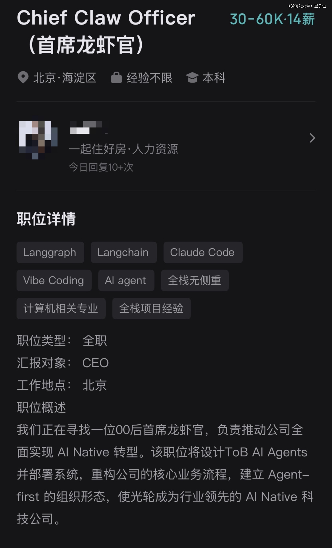 有意思的一点是,这家公司明确希望这位「首席龙虾官」,是00后。