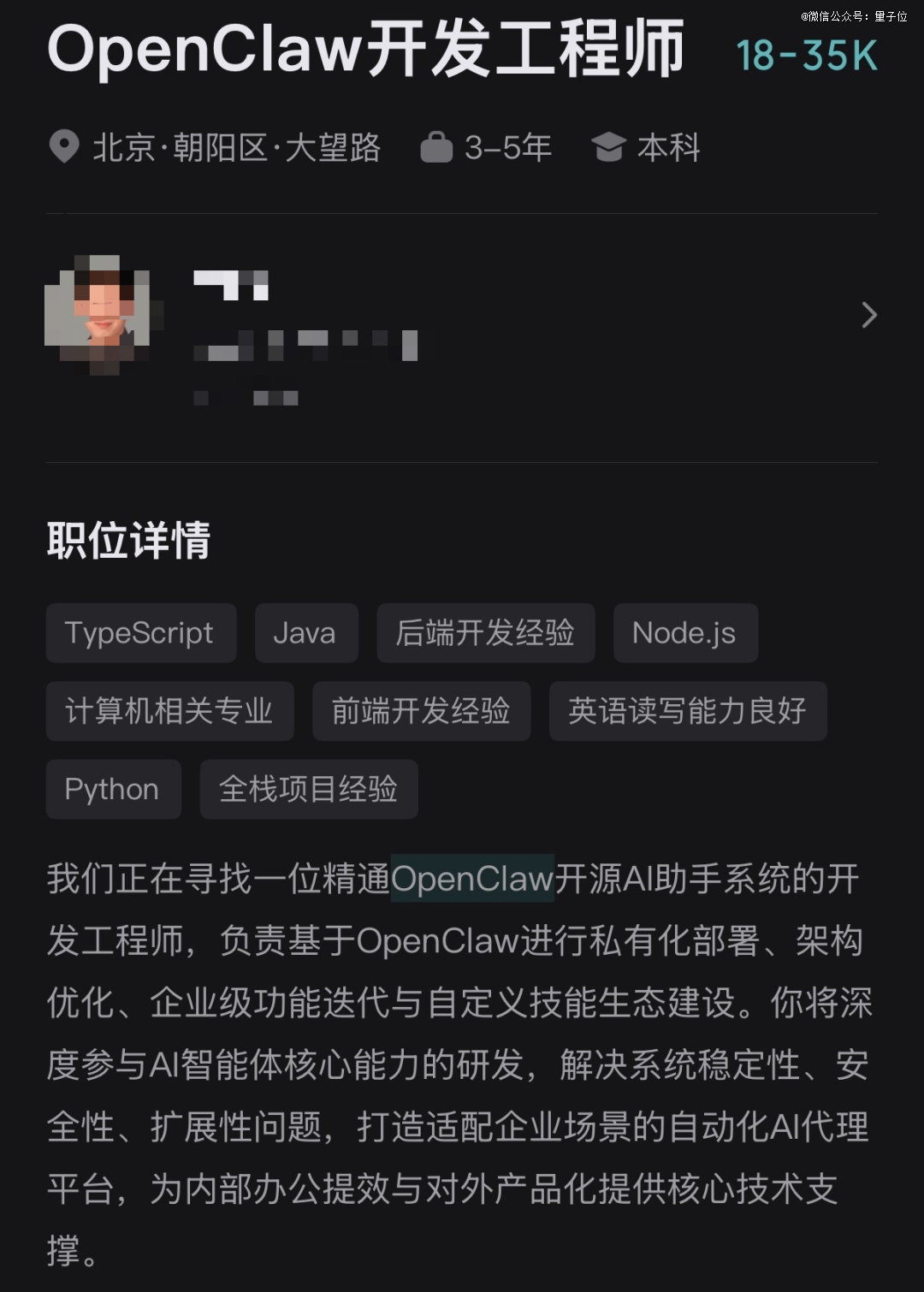 职位详情中点名希望应聘者负责「基于OpenClaw的私有化部署」,有那么点进公司「无他,唯养虾尔」的意思。