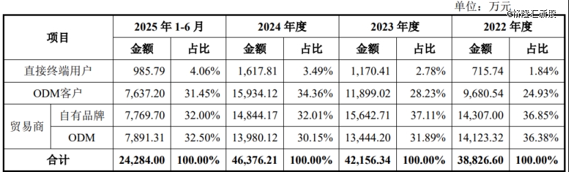 欣兴工具为博世、泛音等多家国际刀具公司提供ODM服务,还以自有品牌“创恒”销售产品,下游客户以ODM客户及贸易商客户为主,报告期内,ODM客户及贸易商客户占主营业务收入的比例均超95%。