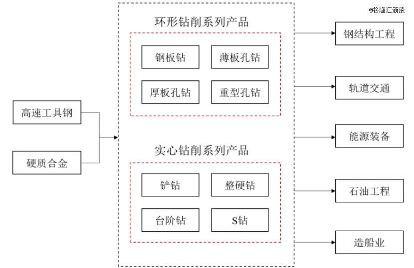 欣兴工具聚焦于孔加工刀具中钻削刀具产品,形成了环形钻削系列产品(包括钢板钻、孔钻等)、实心钻削系列产品(包括铲钻、整硬钻及台阶钻等)及相关配套产品。