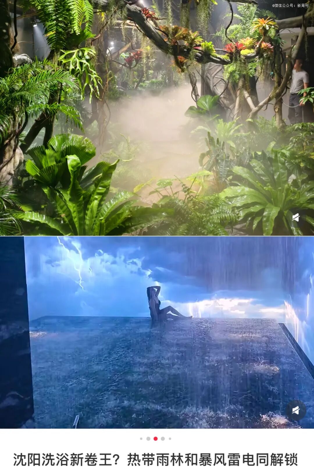 洋气的暴风雨和热带雨林实现了与国际接轨,而本土特色款也是真接地气。比如,某网红洗浴中心的室外泡池区把“铁锅炖自己”都给整上了,巨大的泡缸下是真实燃烧的柴火。冰天雪地的户外,躺在冒着热气儿的铁锅里,欣赏着日落,场景相当抽象。