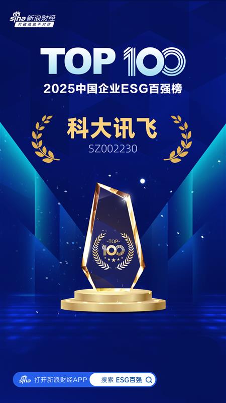 科大讯飞在环境、社会、公司治理领域开展了大量工作,积累了丰富的创新实践与扎实的落地成果。凭借在ESG各领域的卓 越表现,科大讯飞成功入选本次新浪财经“2025 中国企业 ESG 百 强”榜单,并位列第65名。