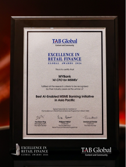 近日,国际权威财经杂志《亚洲银行家》公布2026年度奖项评选结果,因致力于为小微企业提供领 先的AI CFO服务,网商银行获得“亚太区最 佳AI赋能小微企业银行”奖项。