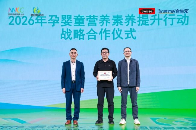 随后,“2026年孕婴童营养素养提升行动战略合作仪式”正式启动,由马冠生教授与潘家源先生担任颁发嘉宾,京东母婴生活馆采购经理张韦华、信誉楼多米婴总经理白金霞、北京瑞安裕康贸易有限公司总经理吴朝勇、长治好孩子董事长付东飞、河北爱尚婴袁广军、乐悠悠孕婴总经理王美等合生元核心合作伙伴代表上台获“2026年度国民营养素养提升计划‘孕婴童营养素养提升行动’重点合作单位”。这不仅是对合作伙伴专业服务能力的认可,更将带动更广泛的零售终端重视营养知识传播,共同守护中国宝宝的健康起点。