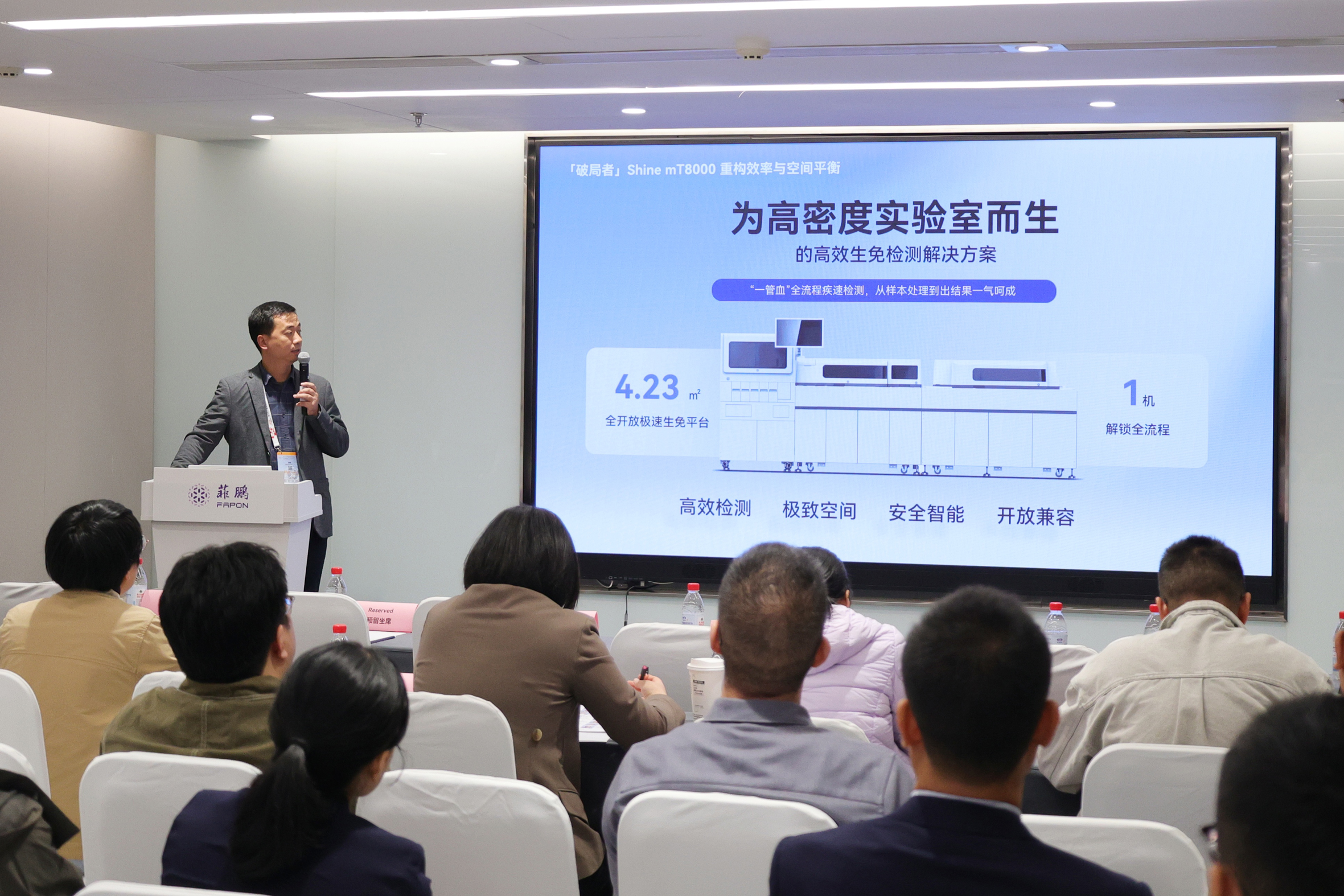 面对国内 IVD 市场增速放缓、集采常态化的行业新格局,菲鹏基于多年全球服务经验,深度剖析了当前 IVD 行业出海机遇及首次公开分享多个出海成功案例,并重磅发布了 Shine mT8000 生化免疫流水线、心肌标志物及小分子检测等领域的创新产品,向到场的国内外客户全面展示了其作为“全球 IVD 整体解决方案供应商”的最新发展成果。